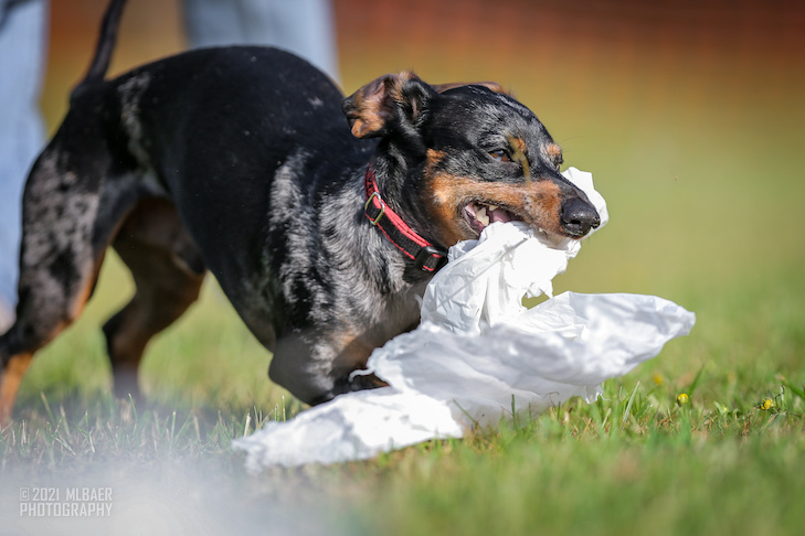 Over the past 5 years, Nugget has achieved over 30 titles and is working on his FCAT4. He has performed in obedience, excellent Rally, dock diving, master agility, tracking, Canine Good Citizen, Trick Dog, Therapy Dog, and more. (His unique appearance and lack of AKC birth papers preclude him from showing in conformation – he clearly is not a conformation dog!)